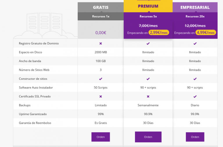 - Servidores: Nos permite «alquilar» un ordenador conectado a Internet en el que podemos instalar un servidor web, un servidor de juegos online o lo que se nos ocurra.